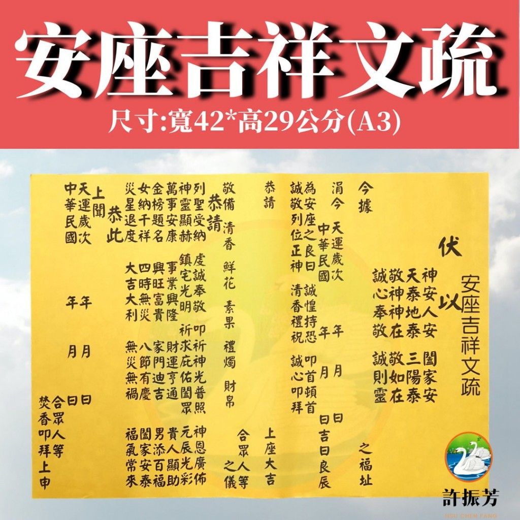 『安座吉祥文疏*1張』宮廟用品 疏文 進香 繞境 謁祖 會香 參香 進香 疏文