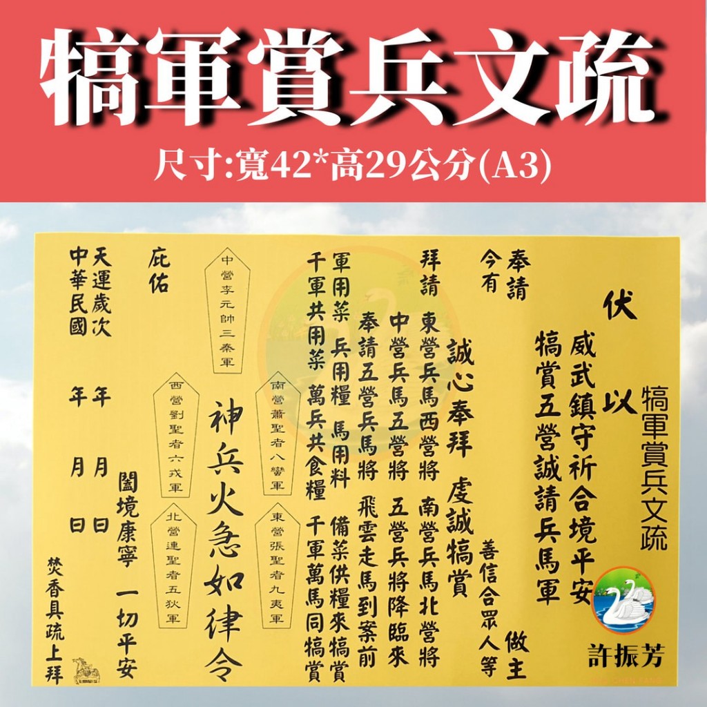 『犒軍賞兵文疏*1張』宮廟用品 疏文 進香 繞境 謁祖 會香 參香 進香 疏文