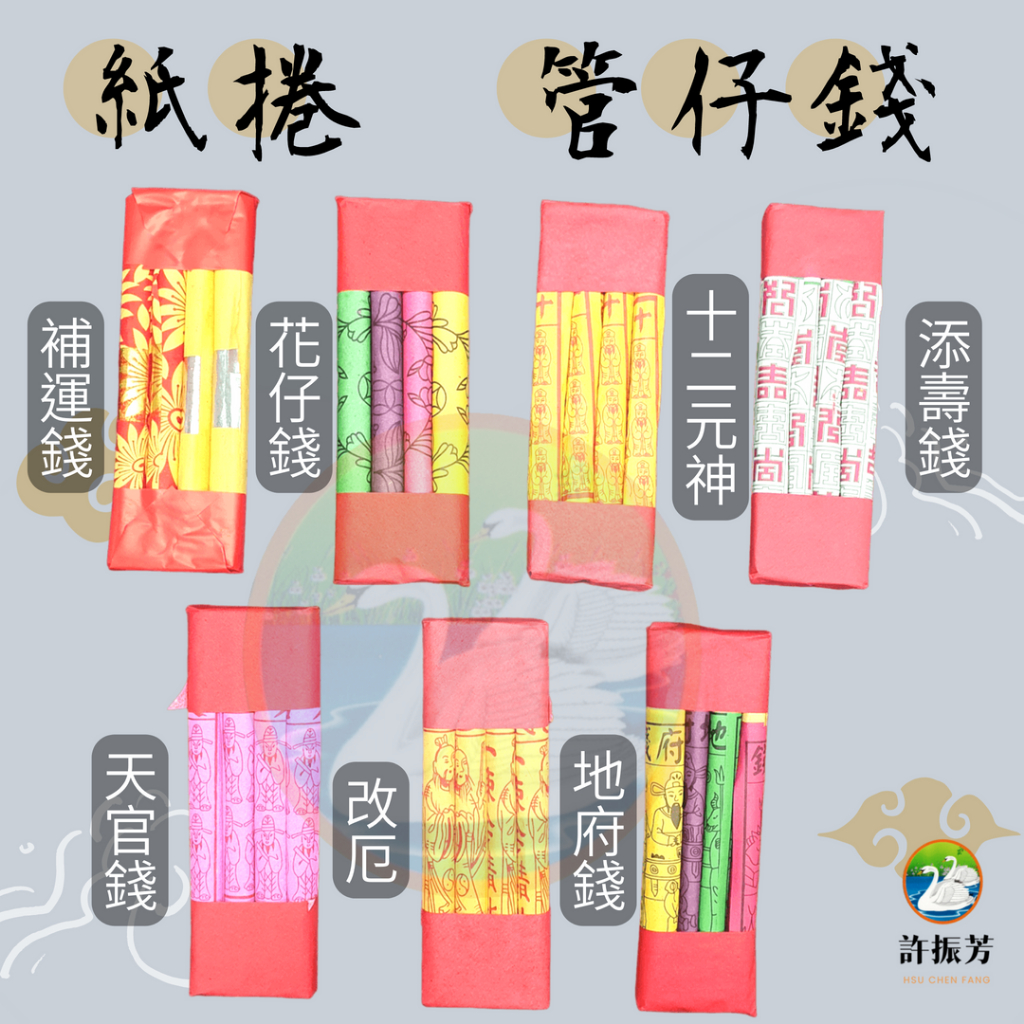 『紙捲金紙 管仔錢』 十二元神 補運錢 添壽錢 改厄錢 地府錢 天官 花仔錢 初一十五 初二十六