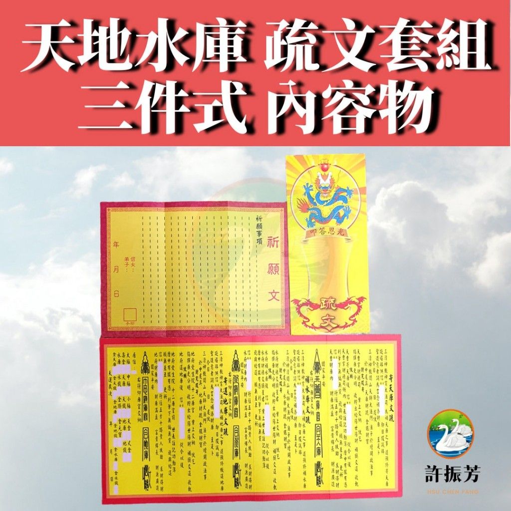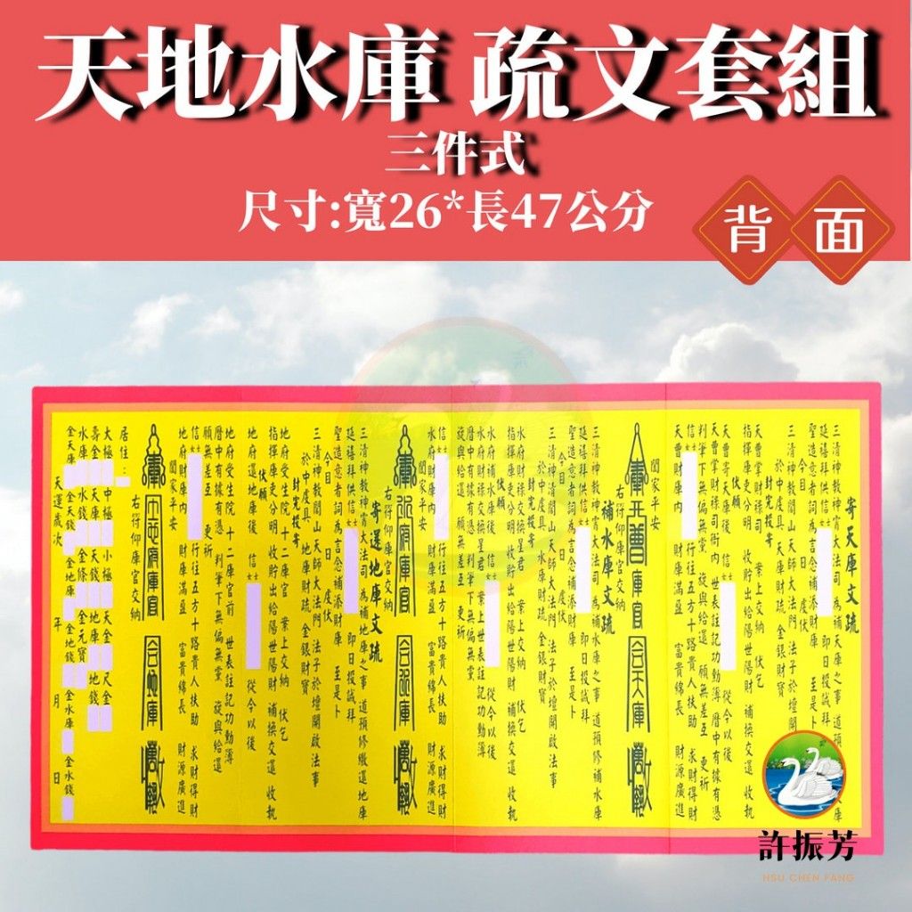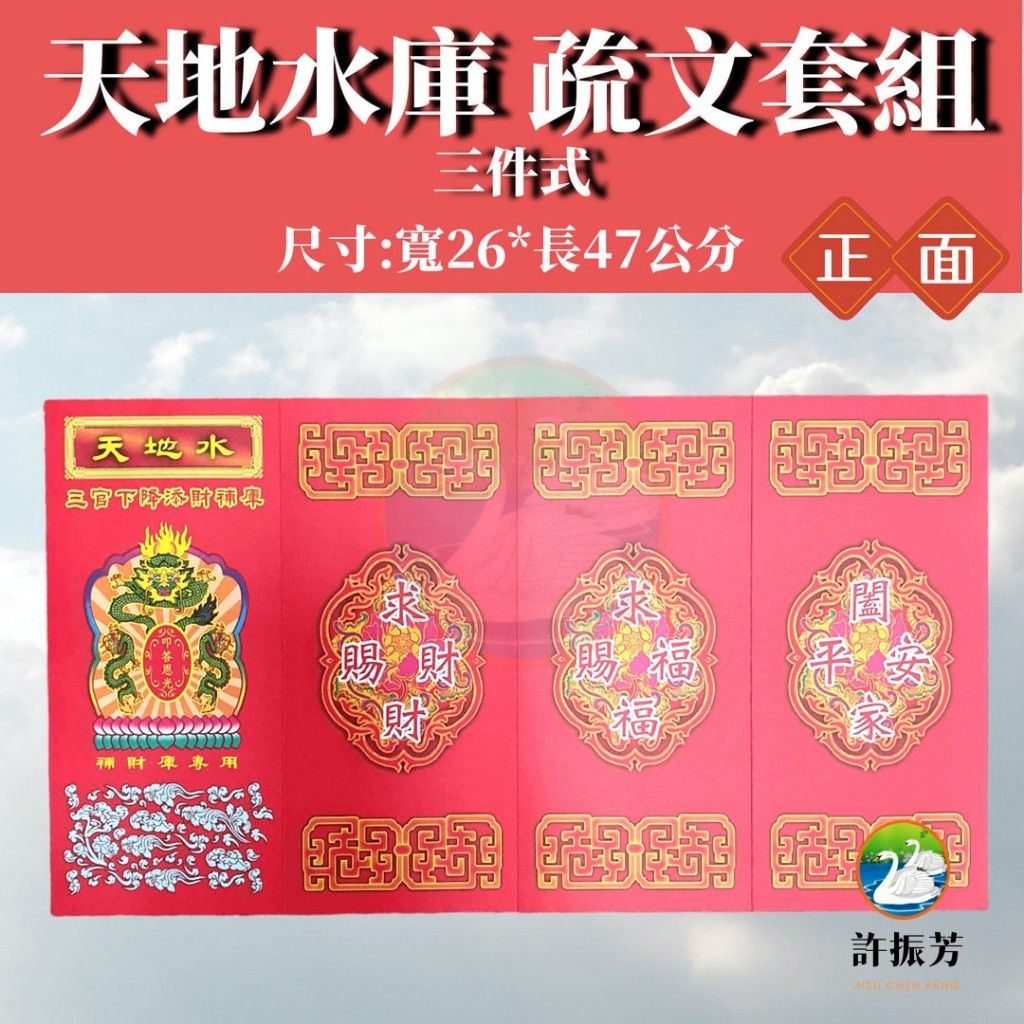 『天地水庫 疏文三件式套組』疏文 文疏 補財庫 金紙 祈福 開運 消災 招財 天官 地官 水官