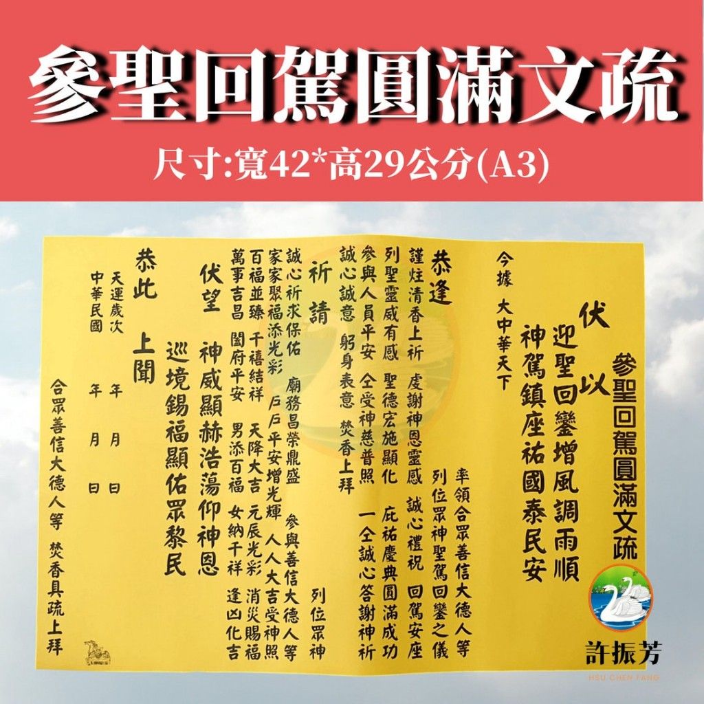 『參聖回駕圓滿文疏*1張』宮廟用品 疏文 進香 繞境 謁祖 會香 參香 進香 疏文