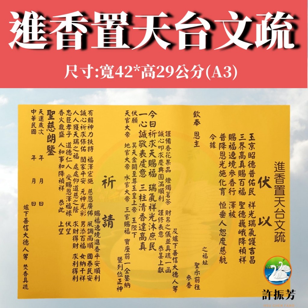 『進香置天台文疏*1張』宮廟用品 疏文 進香 繞境 謁祖 會香 參香 進香 疏文