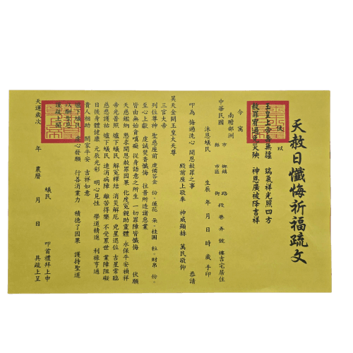 『天赦日懺悔祈福疏文』 天赦金 天赦日